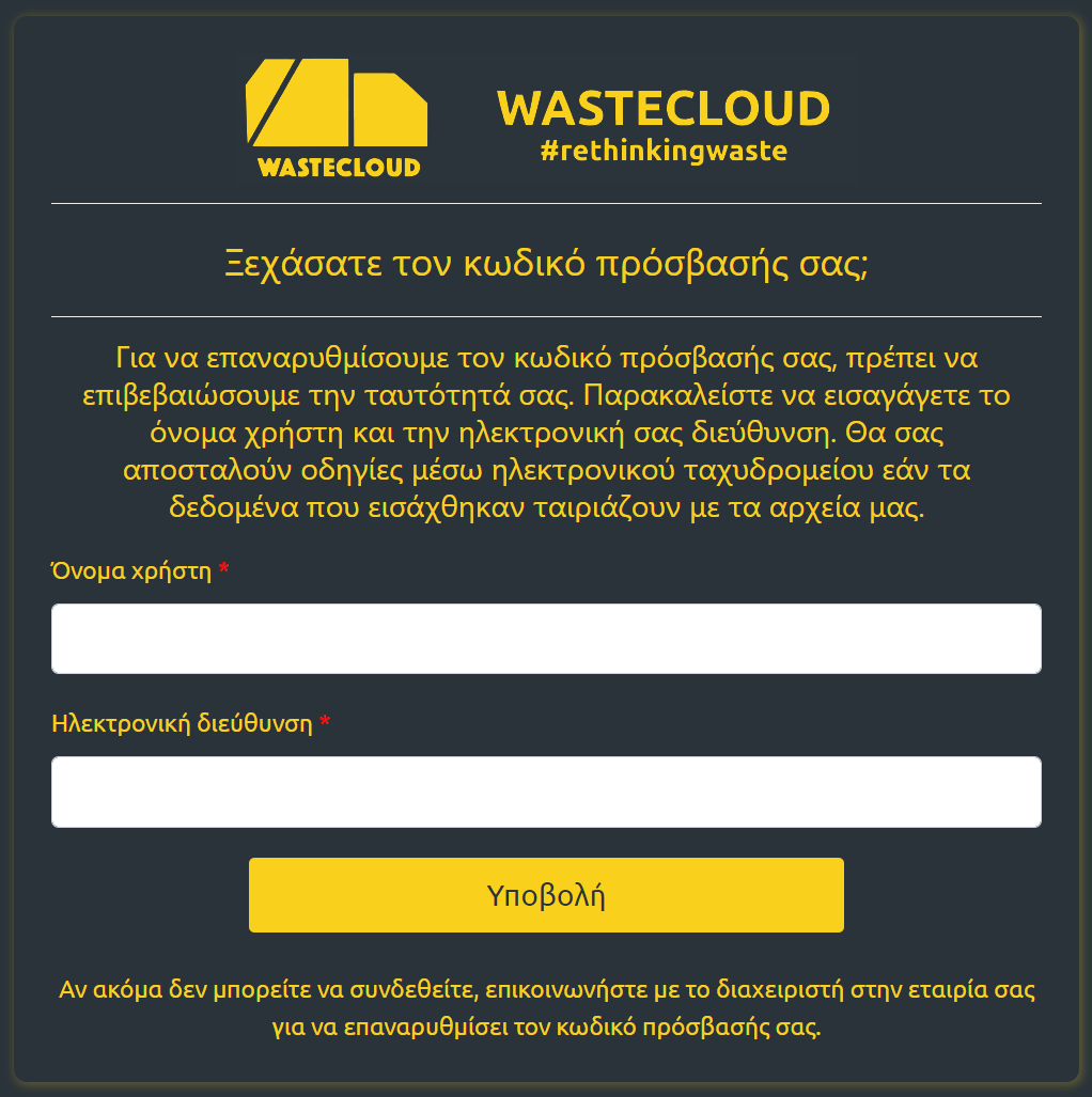 - Από τη σελίδα εισόδου στην εφαρμογή επιλέγει “Ξεχάσατε τον κωδικό πρόσβασής σας;”