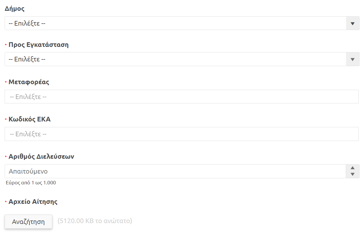 για άνοιγμα φόρμας συμπλήρωσης και συμπλήρωση των απαιτούμενων πεδίων.