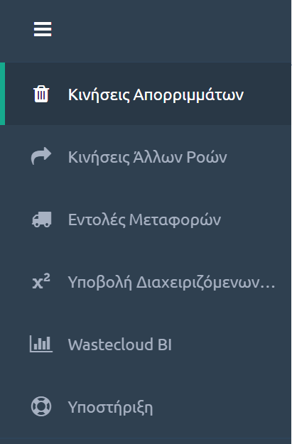 - Πρόσβαση για ανάγνωση των προφίλ αποβλήτων που τους αφορούν προς εγκαταστάσεις του Φορέα, μέσω επιλογής του πεδίου “Κινήσεις Απορριμάτων”